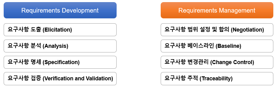 요구공학은 크게, Requirements Development와 Requirements Management로 구성된다고 볼 수 있다.
